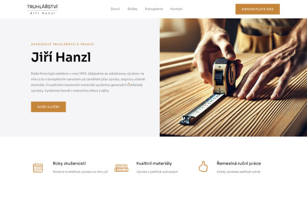 Truhlářství Hanzl je webová prezentace rodinné truhlářské firmy, kterou jsme vytvořili pro efektivní prezentaci zakázkové výroby nábytku na míru. Web umožňuje zákazníkům rychle se seznámit s portfoliem výrobků, historií firmy a kontaktovat truhlářství pro realizaci jejich projektů.