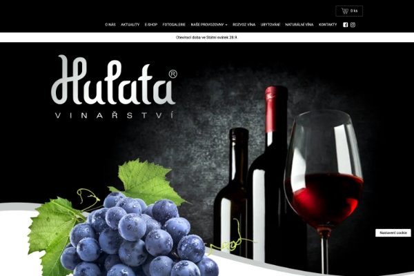 Vinařství Hulata je webová prezentace rodinného vinařství s integrovaným e-shopem pro přímý prodej vín. Web nabízí přehledný katalog produkce, informace o vinařství a umožňuje zákazníkům pohodlně objednávat online.